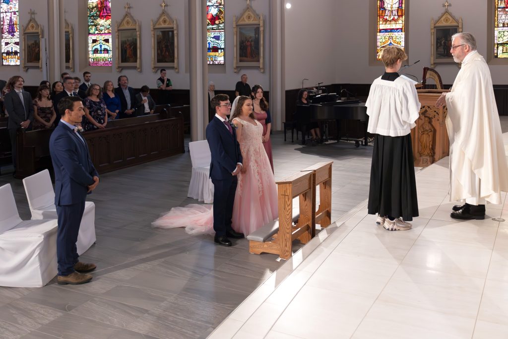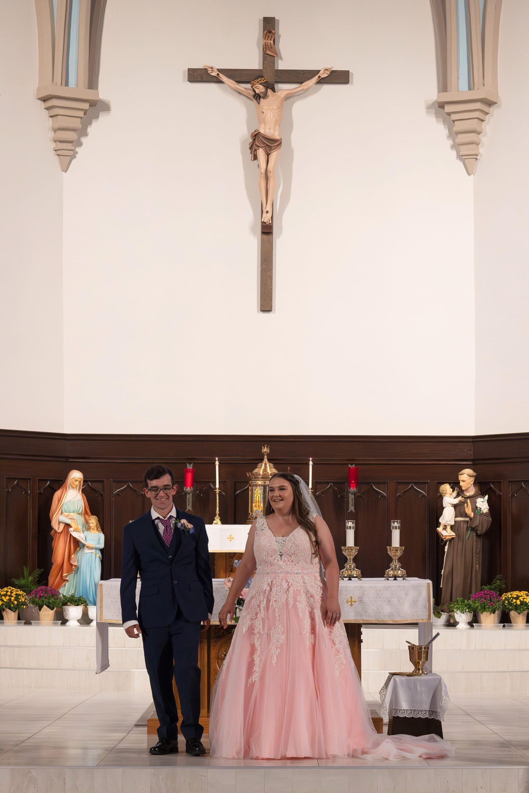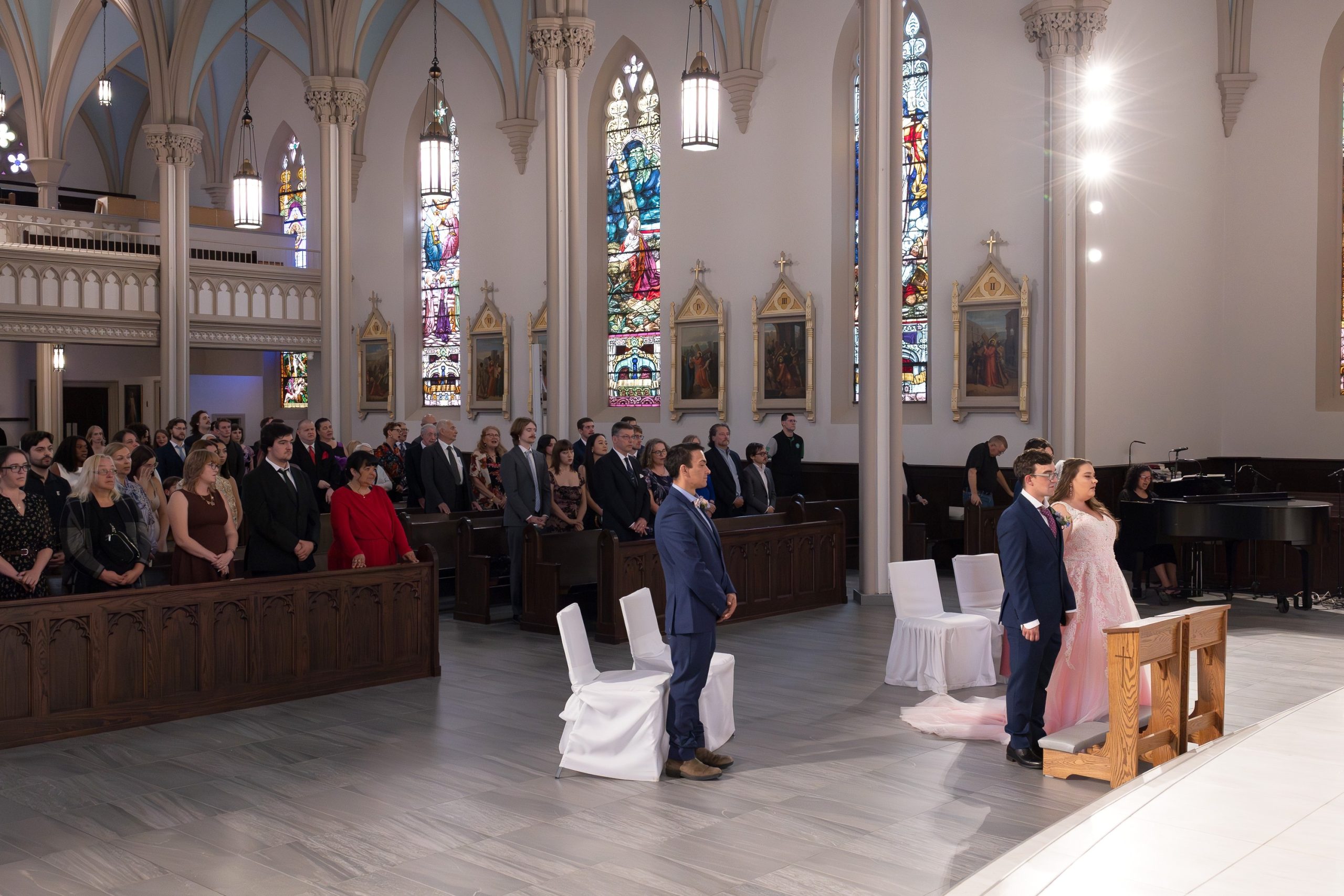 May be taken as the wedding party enters and leaves the church. During the actual ceremony, pictures and videos may be taken ONLY by authorized photographers from previously assigned areas. The sanctuary (the raised area where the altar and tabernacle are located) is off limits.