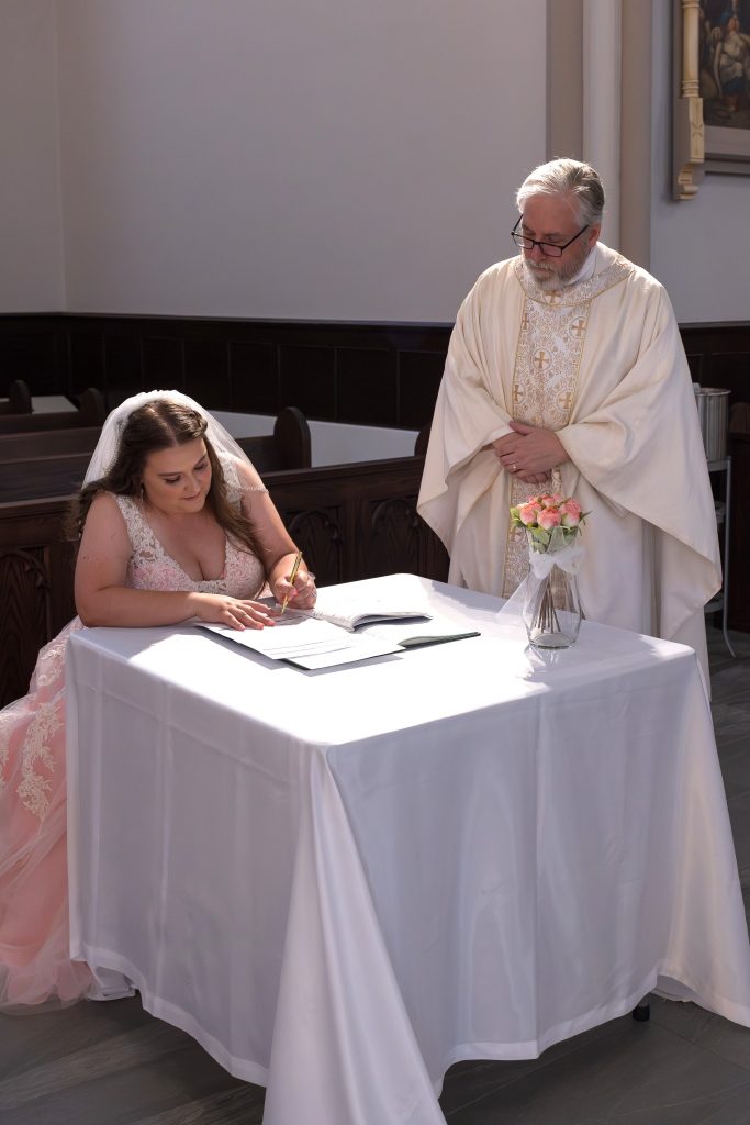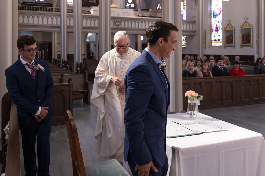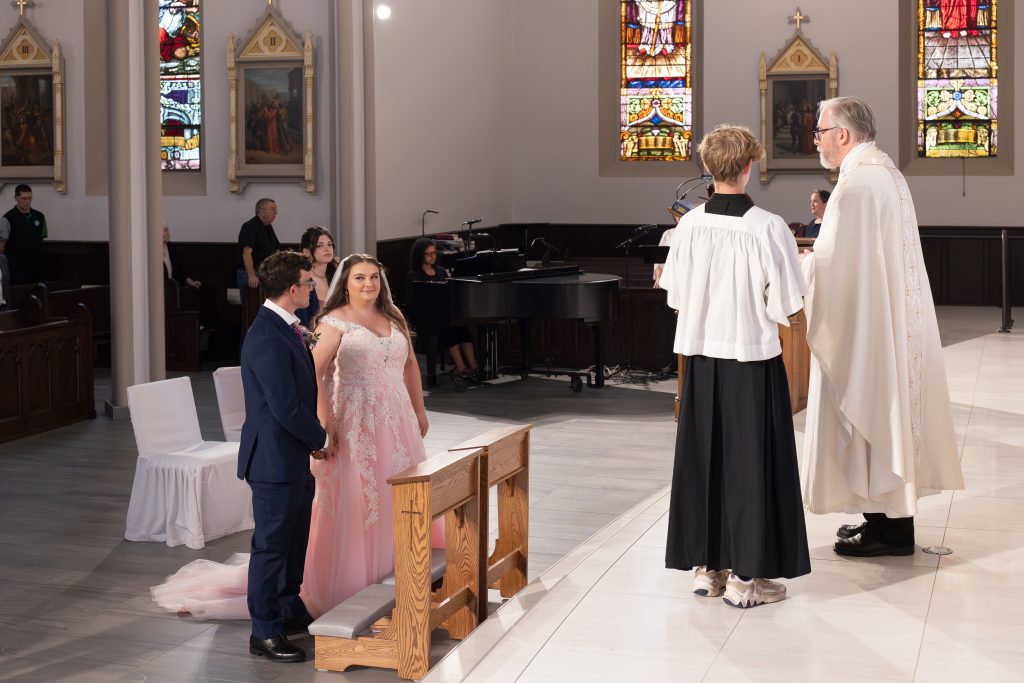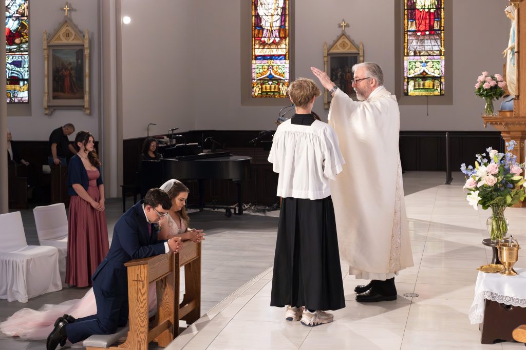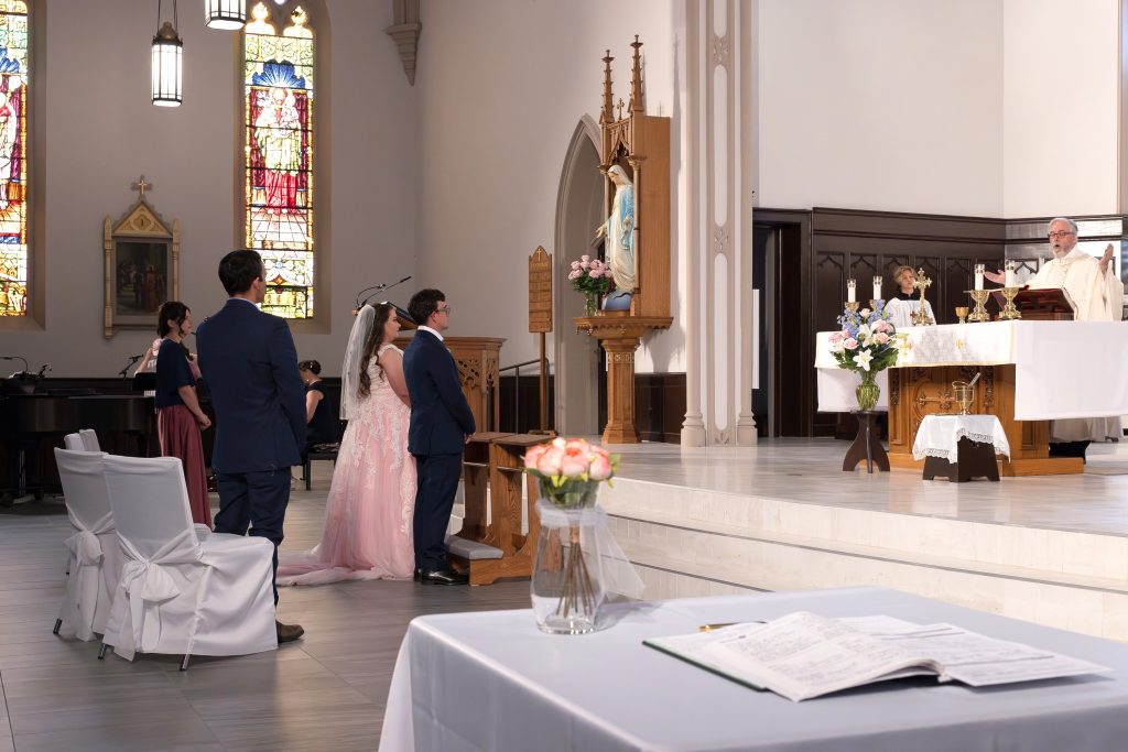 It is the couple’s responsibility to help prepare their wedding liturgy with the priest or deacon who will preside. Booklets are available to guide you through the service and assist you with selecting the required readings and prayers. The wedding rehearsal takes place at a convenient time with the presider—at least two weeks prior to the day. Wedding liturgies can be held any day but Sunday; celebrations on Saturdays are scheduled between 11 a.m. and 2 p.m.